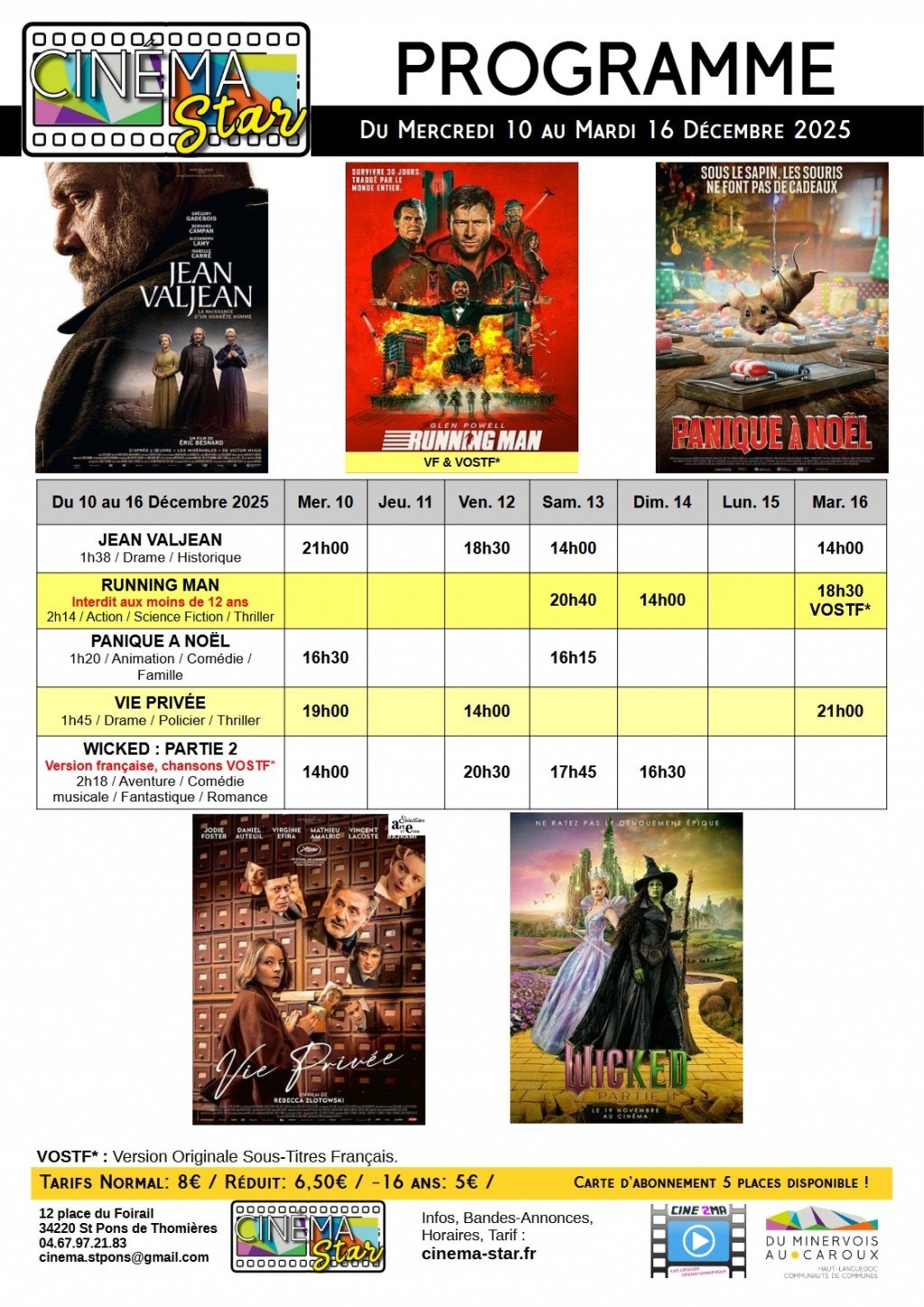 Cinéma Star, 12 Place du Foirail, 34220 Saint-Pons-de-Thomières | Mentions légales | Contact | Tel : 04 67 97 21 83